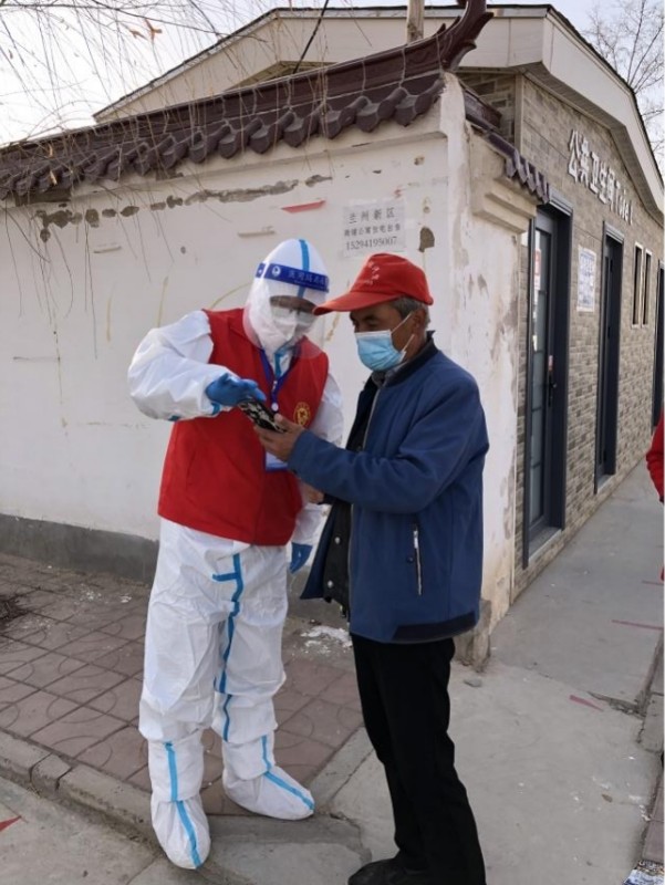 在这场与疫情“赛跑”的比赛中,兰州新区化学工程有限公司党支部把投身防控疫情第一线作为党史学习教育的试金石,全心全意投入到疫情防控及核酸检测工作中,以过硬的作风和扎实的成效为群众办实事,让党旗在防控一线高高飘扬。