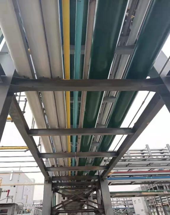 随着冬季气温不断降低。做好防冻工作是化工企业冬季安全生产的基础性工作,在朗玛旗云项目上,设备和管线都穿上了冬日的“新装”。冬季防冻采用电伴热和蒸汽伴热,外加岩棉保温。现场保温工作量大,全厂区覆盖面广,主要分为四个生产车间、管廊、储罐区域。设备保温包括各类反应釜、储罐、水箱、精馏塔、冷凝器、热水罐等,管线包括各类进出料管线,如:纯水、循环水、蒸汽、消防水、冷凝水等。
