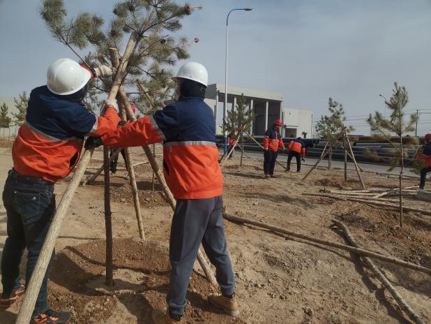 热电公司:化工热电公司组织开展“植树造林绿厂区 美化环境益千秋”主题植树活动