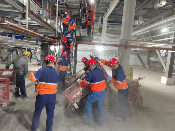 为保障园区供汽,130t/h燃煤锅炉锅炉必须具备随时起炉的条件,锅炉点火前必须在炉膛内铺设底料(炉渣),受现场条件限制,这些底料必须由人工从底料储备点转运至炉膛。此次主题党日活动的开展,既让全公司干部职工为保供工作助力,又增强了公司凝聚力,彰显出化工热电公司各部室员工既可聚作一团火,又可散作满天星的精神。
